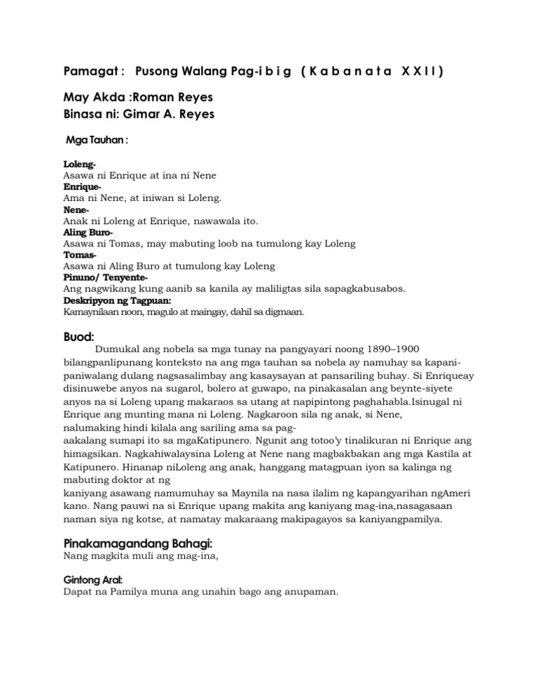 Pinaglahuan by Jorina Pausal on Prezi Copy of Pinaglahuan. Ano ang buod ng nobelang pusong walang pag ibig ni roman Reyes. Pusong Walang Pag-ibig K22 May Akda.