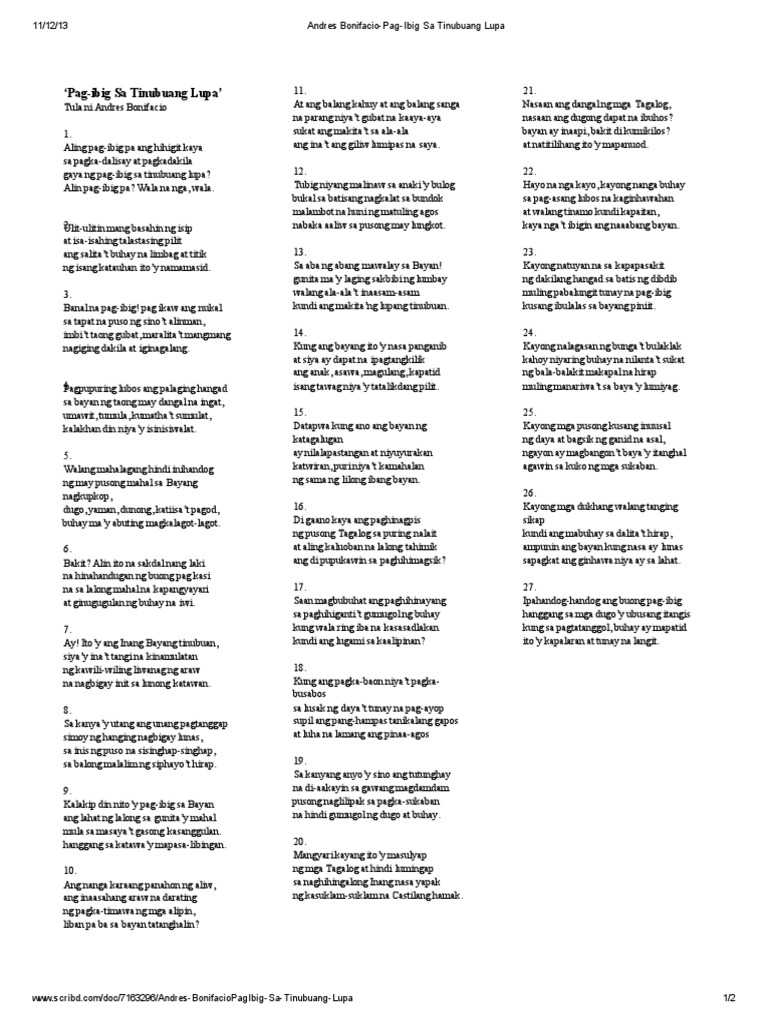 Andres Bonifacio Pag Ibig Sa Tinubuang Lupa
